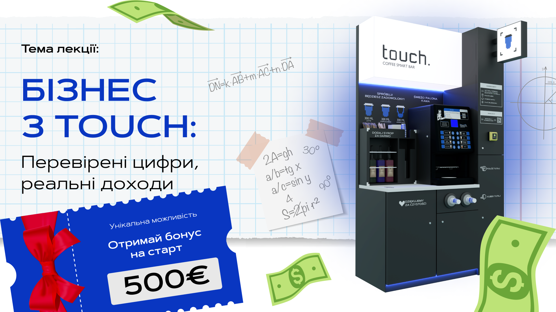 • Бонус 500 € — на відкриття власної кавʼярні